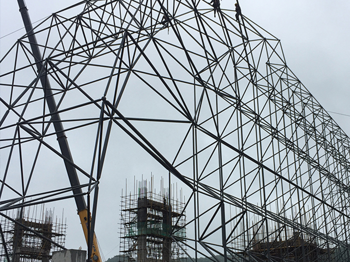 4.满堂脚手架是最有利的 螺栓球网架淮南施工平台,它在确保淮南施工安全的同时,又能承当部分网架重量,有效防止网格下沉变形,以及调整网架安装过程中的误差积累和支座与预埋件之间的偏离。
